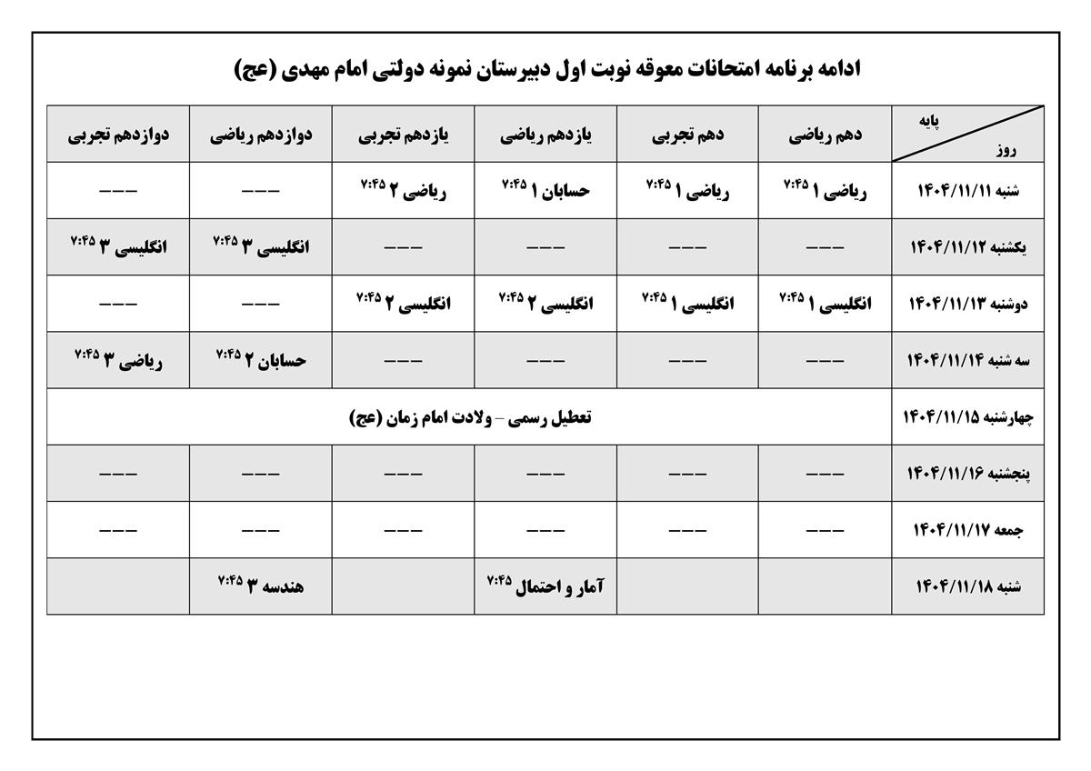 ادامه برنامه امتحانات معوقه